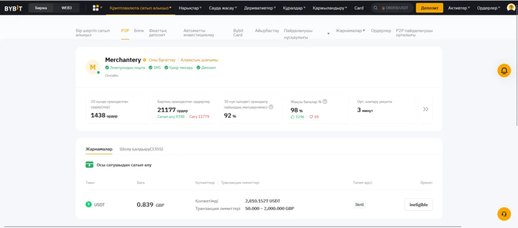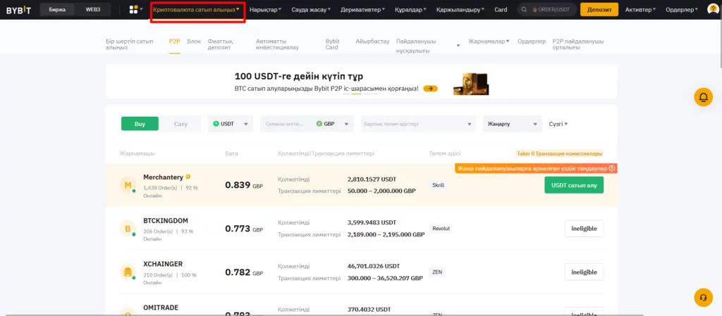 Как купить криптовалюту P2P на централизованной криптобирже на примере Байбит